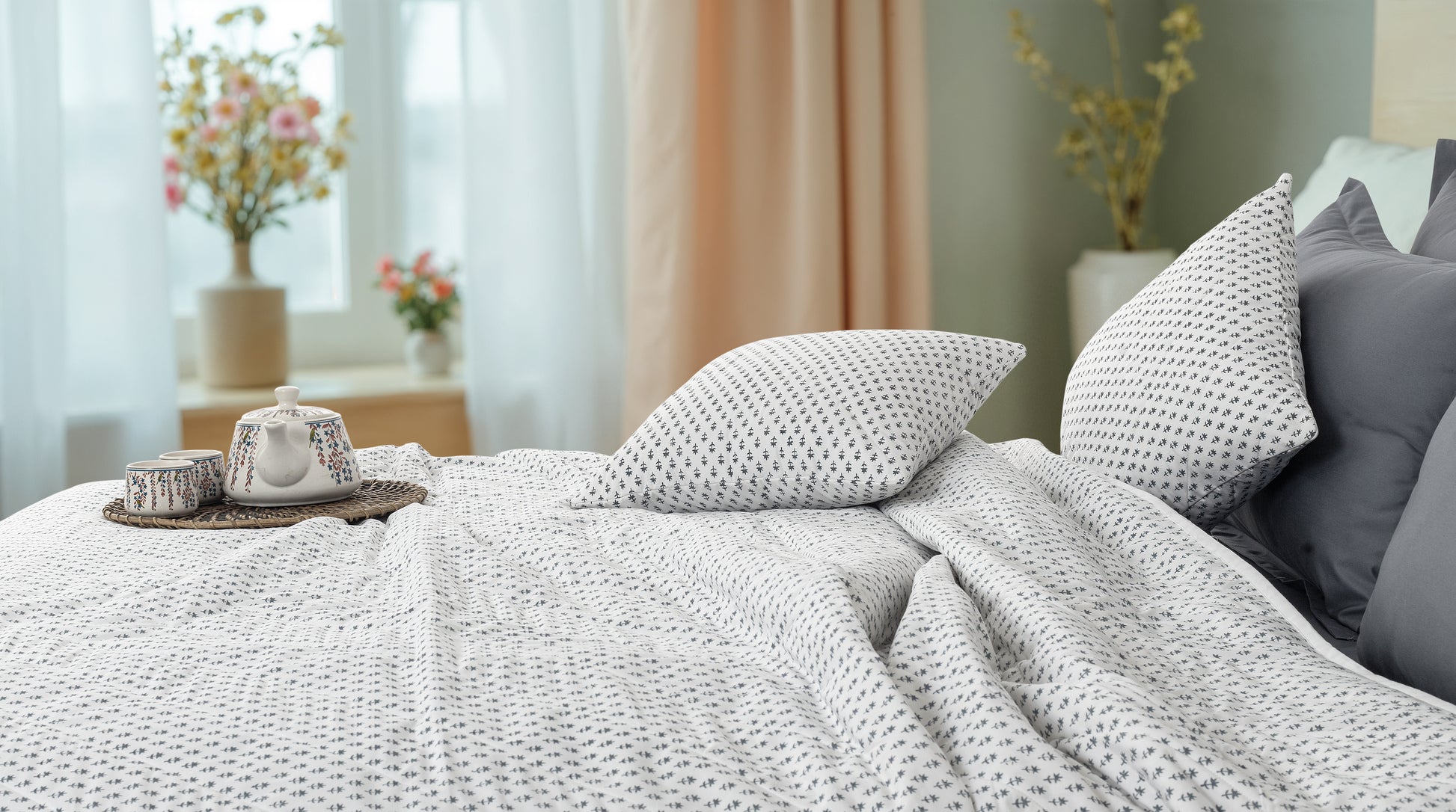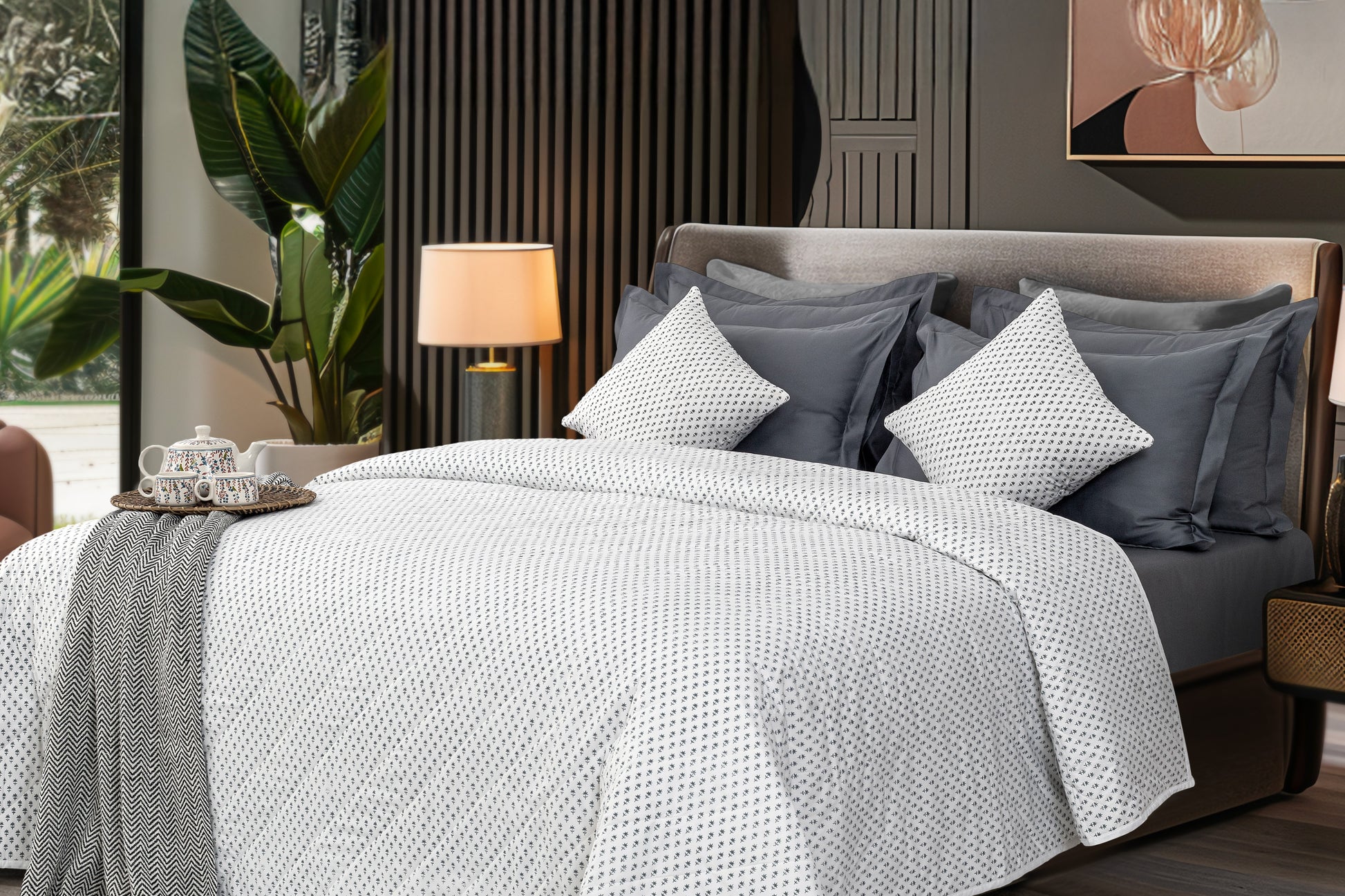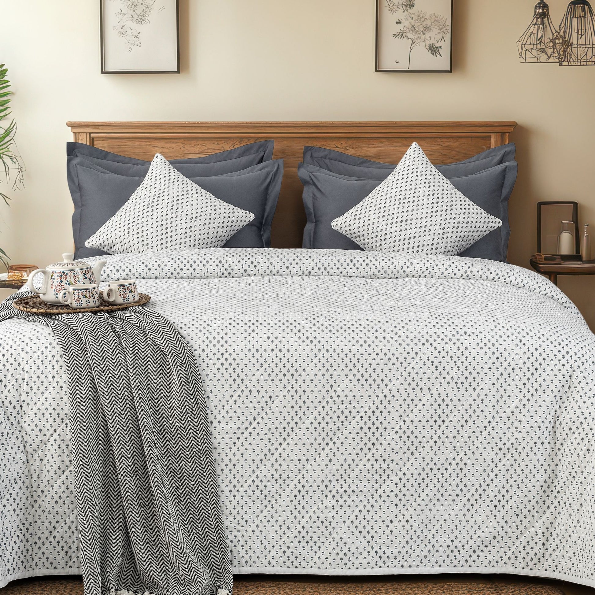 Experience gentle comfort with the Summer Quilt/Bed Cover "Cornflower." Crafted with a 200 thread count cotton top fabric and filled with natural cotton, this quilt offers a soft, breathable layer perfect for warm nights.It can be used as a summer quilt and as a bed cover too. Its natural materials ensure a cozy yet lightweight feel, helping you stay comfortably cool and rested throughout summer.